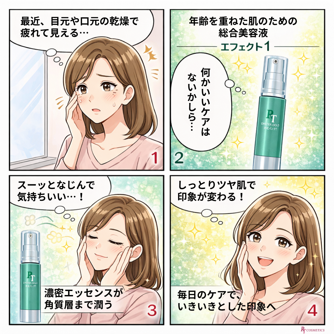 疲れて見える肌の正体は、“足りない”ではなく“乱れている”でした。 いじめない基本のお手入れを充実させて、ぜひ土台から整えてくださいませ。 総合美容液『エフ…
