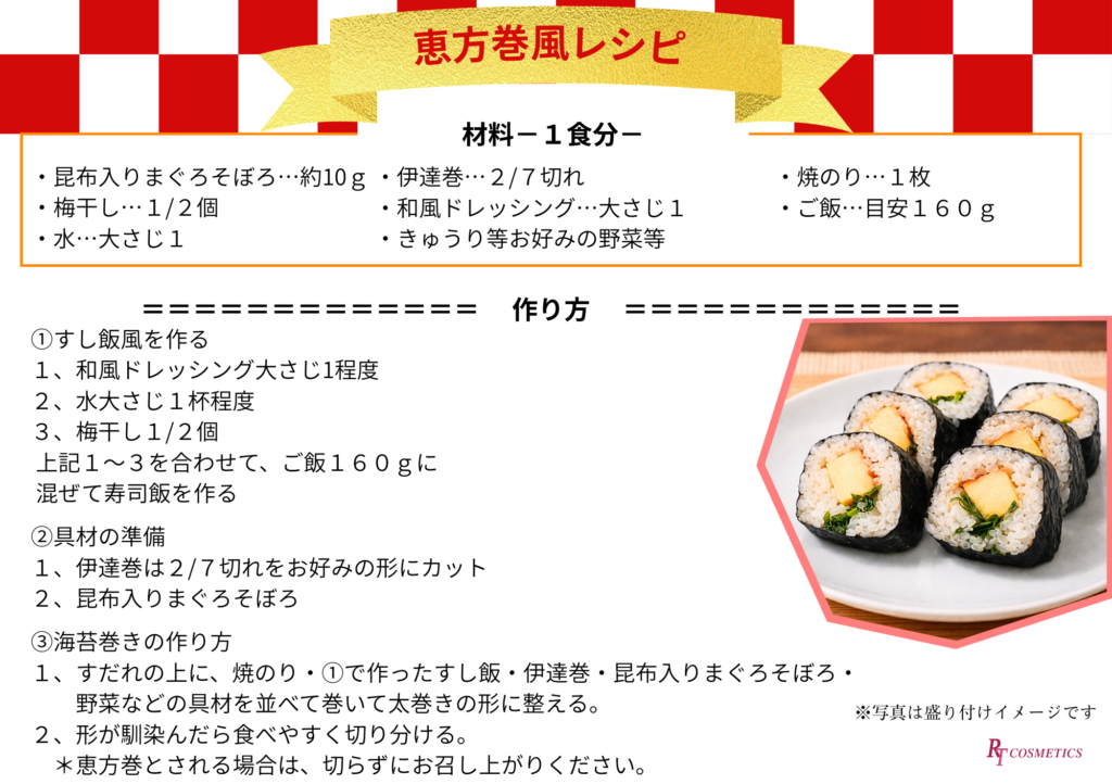ご参考として、RT食品を使った「恵方巻風」のレシピを後ほどご紹介いたします。